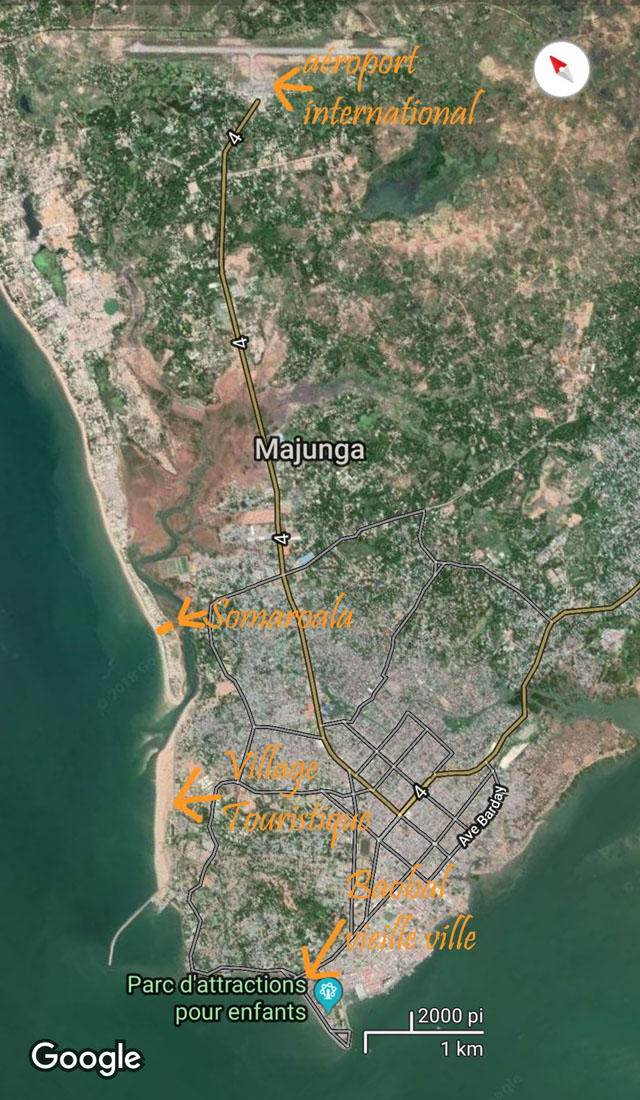 Ne tardez pas à venir dans ce petit paradis jusqu'ici protégé par son accès atypique car .... Un projet en deux phases déposé à la mairie est en cours de réalisation. La première phase, la réalisation de 2 pôles touristiques est achevé, la seconde prévoit la prolongation d'une route 2 fois 2 voies avec un pont qui reliera la petite presqu’île pour en faire le troisième pole touristique de Majunga,pour sa plage jusqu'ici déserte...